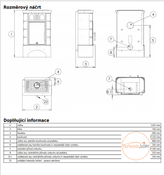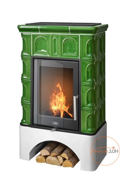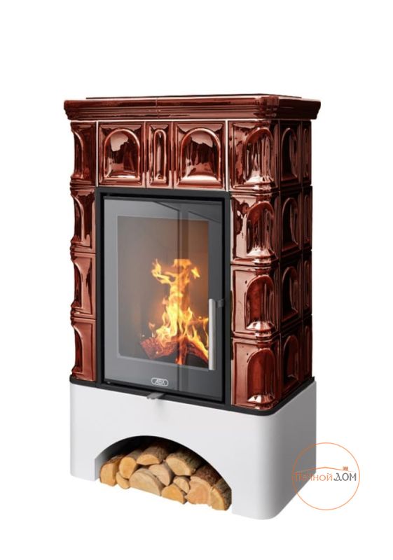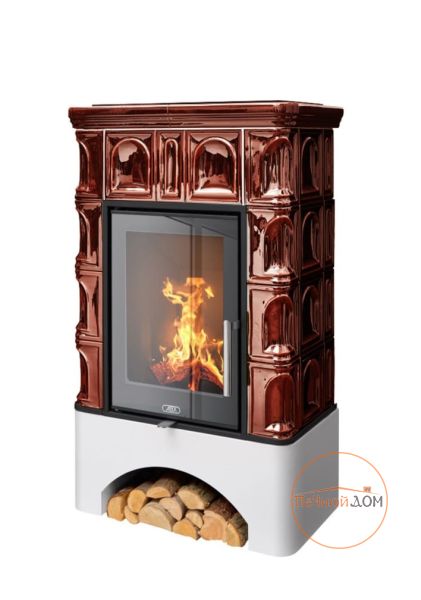 Внутри Бавария изготовлена из легированной стали футерована вермикулитом. Кафельная облицовка из изразца не даст получить ожог, если случайно прикоснуться, а разнообразие цвета, поможет подобрать печь под любой интерьер. В нише печи имеется вместительный дровник