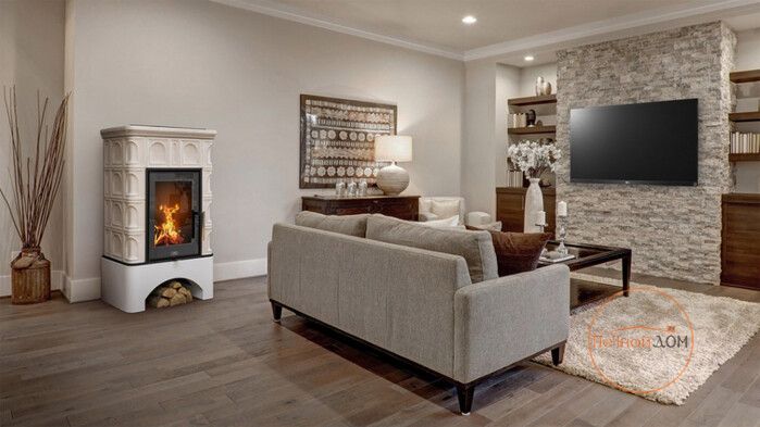 Модель Britania Exclusive с белым цоколем продолжает серию кафельных печей Britania, Чешской компании АВХ.