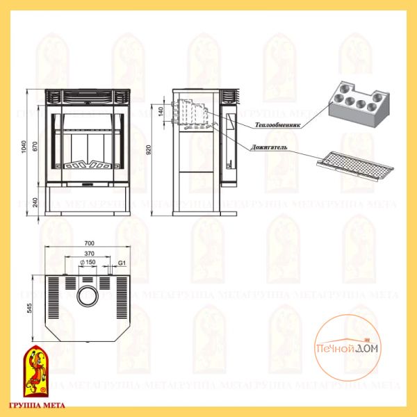 Дровяная печь камин "Ангара 12 Аква" с водяным контуром
