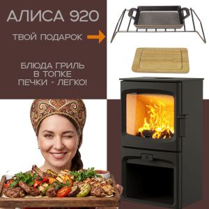 При покупке печи Алиса 920 - сковородка, решетка для приготовления гриля в топке и разделочная доска в подарок!