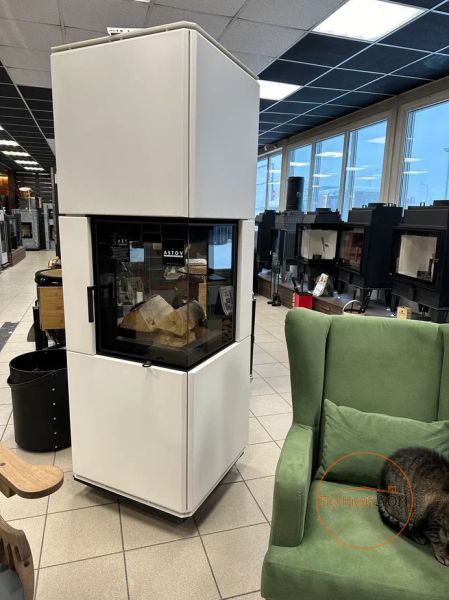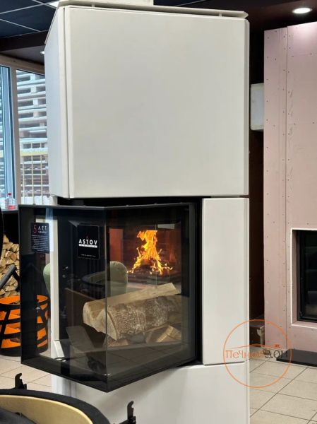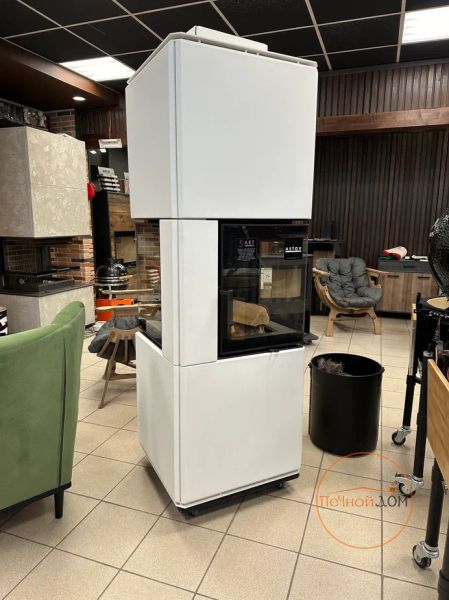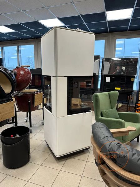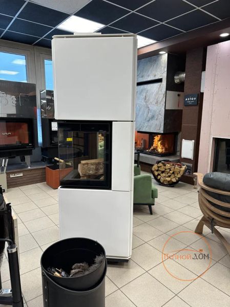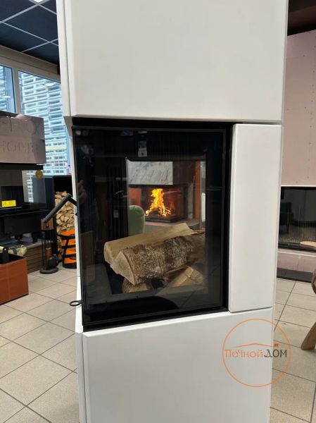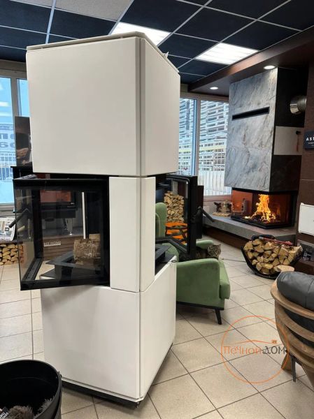 Скидка на выставочный образец камина, белая облицовка, топка четырехсторонняя.