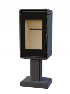 Печь-Камин Астов Куб (ПК 4581) поставляется в двух комплектациях - на ноге и на дровнике. Также возможны два варианта оформления - металл и камень.