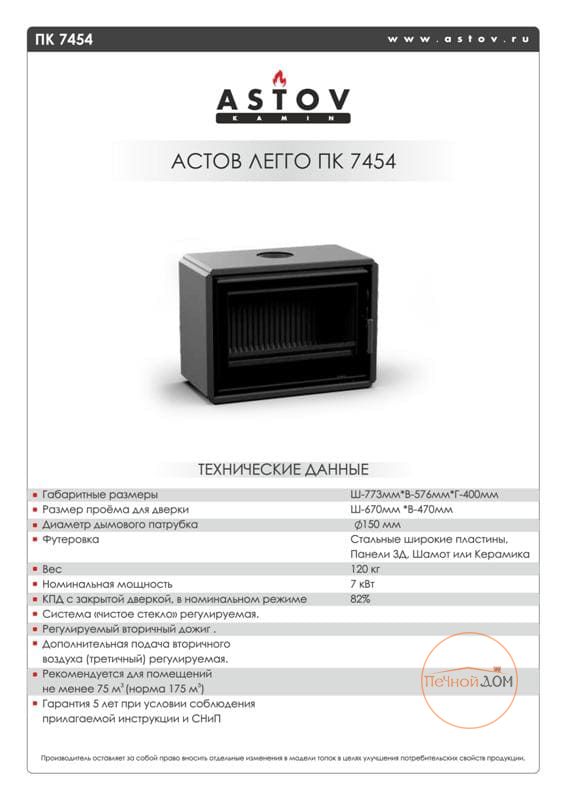 Новинка от компании Астов - Печь-Камин Астов ЛЕГГО ПК 7454, еще одно готовое решение для Вашего дома. Печь-камин высокого класса. Присутствует подача воздуха и на вторичный и на третичный дожиг, удобный механизм закрывания двери, полная регулировка горения.