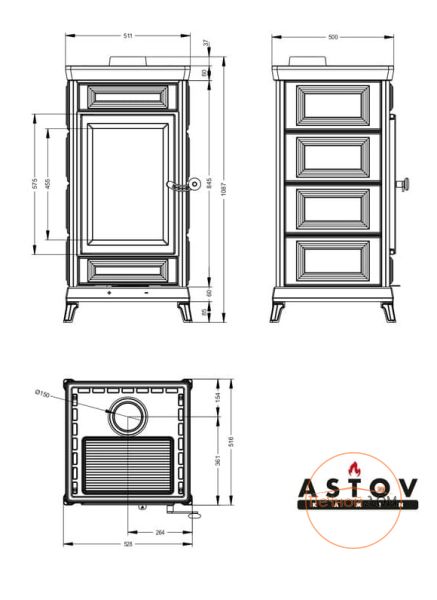 Печь-камин с варочной плитой Майолика / Astov (Россия)