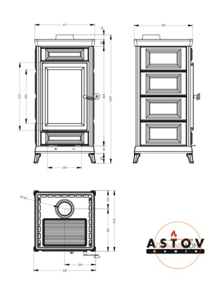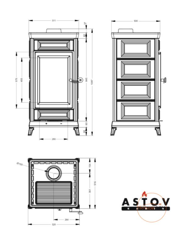 Так же для этой модели печи вы можете заказать варианты футеровки: чугунные 3D-панели или вермикулит.