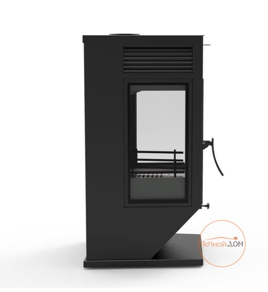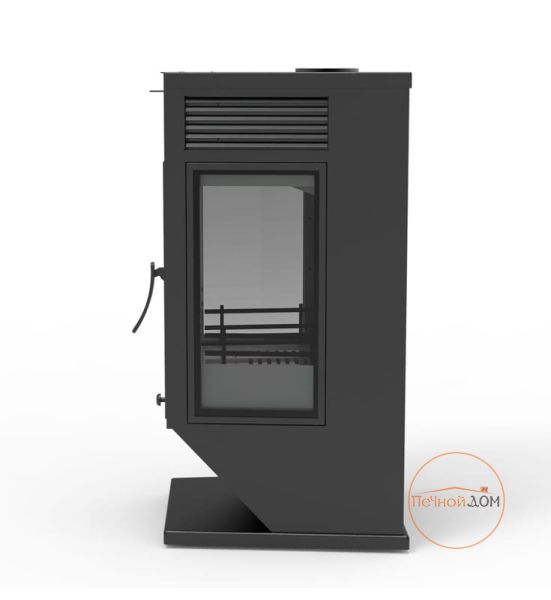 Полностью чугунная футеровка имеет узор в виде пирмидки, корпус печи выполнен из котловой стали ,окрашен Hors-6 в черную краску, имеет дровник в нише, остеклен с трех сторон.