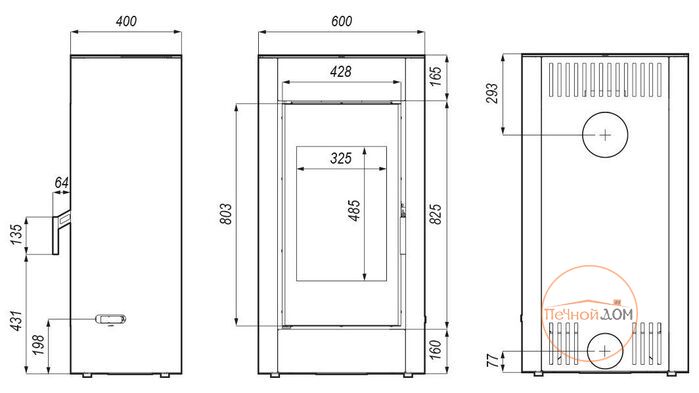 Печь SOLUM, от производителя DEFRO HOME, выполнена в современной стилистике, качественная сталь корпуса покрыта специальной краской, которая надежно защищает от коррозии. Подключение дымохода возможно сверху и сзади, также есть подключение воздуха на горение из вне, патрубок идет в комплекте. Большое стекло дверцы с трафаретной печатью, надежно защищает герметичную топочную камеру с белой футеровкой. Воздушные потоки, которые проходят не только через толстую, стальную колосниковую решетку, но и через отверстия на задней стенке и вдоль стекла, тем самым позволяя экономно и качественно жечь дрова. Печь имеет три модификации, а также можно заказать с различным цветом корпуса (красный, белый, золотой, коричневый, серый). Гарантия от производителя 5 лет.