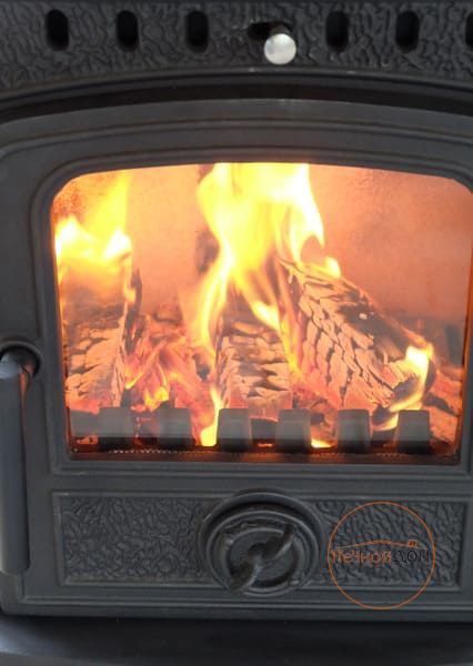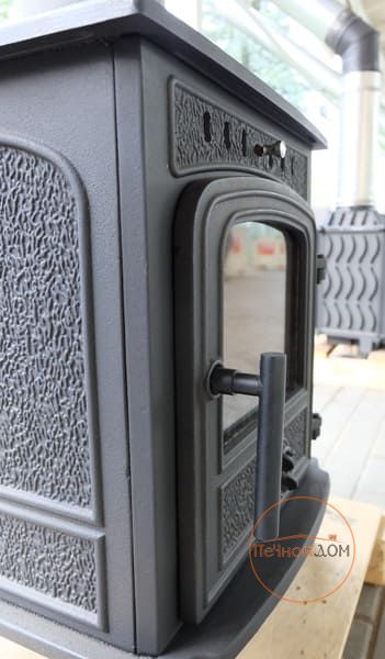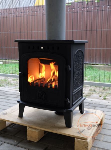 Компактная печь-камин Динго способна обогреть до 140 кубических метров (до 60 м2, при высоте потолков 2,5 метра). Печь выполнена из чугуна, но дополнительно в топку встроен вермикулит, который отражает температуру в топку, тем самым увеличивает КПД сгорания топлива и защищает чугун от экстремальных термонагрузок. В печи реализован вторичный дожиг и режим "чистое стекло".