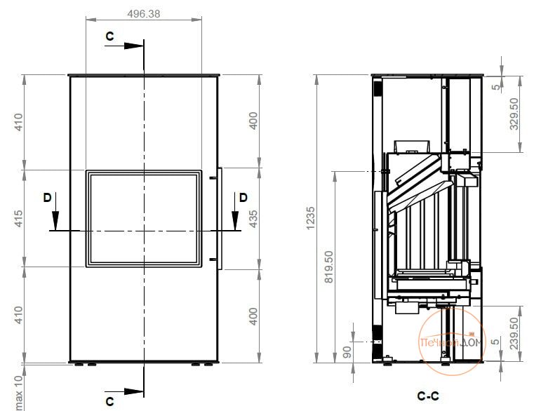 | Опции каминов и печей | вторичный дожиг, система чистое стекло |