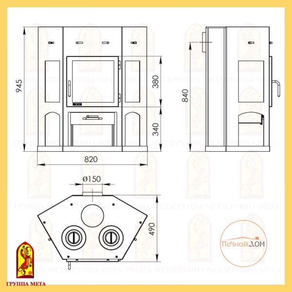Особенность данной модели печи камина ЕНИСЕЙ конечно же варочная поверхность с двумя чугунными сменными конфорками. В то же время, как и в простой модели сохранен полный обзор топки – жаропрочное стекло установлено с трёх сторон, что дает великолепную возможность наблюдать за игрой огня не опасаясь искр и сажи. Регулировка тяги позволяет поддерживать комфортную температуру в доме. Между внутренним и внешним корпусами располагаются каналы, в которые поступает холодный комнатный воздух и, нагреваясь, опять возвращается в помещение. В результате уже через 5-20 минут воздух в помещении прогревается. При полной загрузке дров в режиме долгого горения печь камин ЕНИСЕЙ поддерживает тепло в течении 6-8часов. В качестве топлива используются сухие дрова или брикеты бурого угля. Категорически запрещается применение каменного угля и его производных. Корпус печи камина ЕНИСЕЙ выполнен из листовой стали, окрашенной жаропрочной краской.