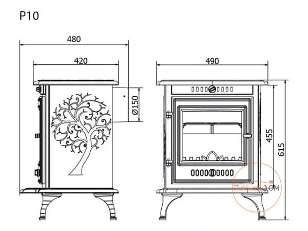 - верхнее подключение дымохода; - Печь-камин Kaw Met P10 соответствует всем европейским стандартам качества.