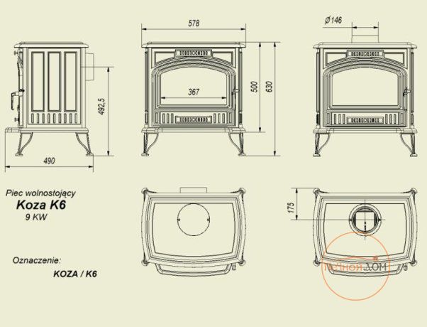 Серая чугунная печка для дачи с номинальной мощьностью 9кВт. Печь относится к категории эконом класса. С помощью рычага возможно регулирование подачи воздуха на горение. В качестве топлива можно использовать не только древесину, но и угольные брикеты.
