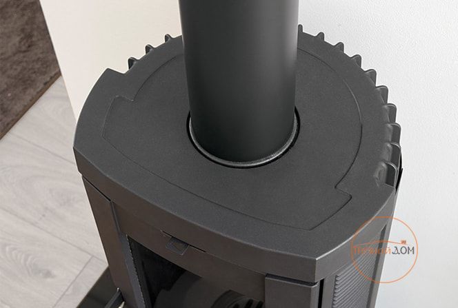 Размеры очага - 233х315 мм. Чугунная дверца печи оборудована большим керамическим стеклом, выдерживающим температуру нагрева до 750°С.