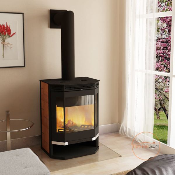 Печь-камини Ангара 12 с плитой выгодно отличается отличным обзором огня за счет призматического остекления топки и внушительных размеров стекла. В верхней крышке печи встроены две варочных поверхности, позволяющие использовать печь как полноценную плиту, с возможностью не только вскипятить воду, но и жарить, варить, топить ваши кулинарные изыски. Хоть печь и изготовлена из стали, но топка полность защищена шамонтным кирпичем, что позволяет защитить стальной корпус от прямого воздействия пламени и значительно увеличить срок эксплуатации печи. Так же стальной корпус позволяет встроить в печь-камин современные технологии, такие как: