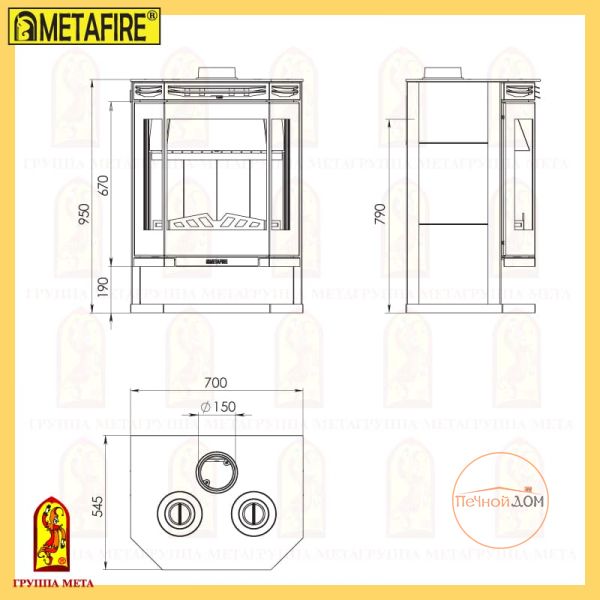 Печь-камин Ангара 12 с плитой / Мета (Россия)