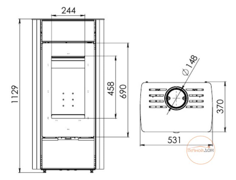 Стальная печь “Нарочь” - это необычная и стильная печь, которая обязательно станет изюминкой любого помещения. Дверца и конвекционный кожух по бокам отделаны снаружи глянцевыми черными стеклянными панелями. Жаростойкое стекло скрадывает объем, растворяя печь в интерьере, и эффектно оттеняет пламя, наблюдать за которым удобно сквозь стекло дверцы. Печь-камин рассчитана на обогрев 140 куб. метров пространства.