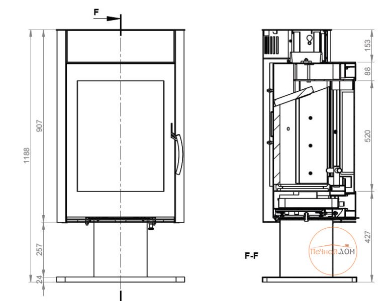 | Опции каминов и печей | вторичный дожиг, система чистое стекло |
