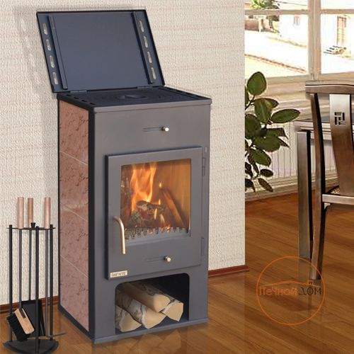 Аналогичная по всем характеристикам предыдущей печь с плитой.