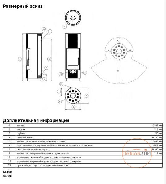 | Диаметр дымохода, мм | 150 |