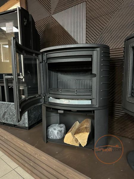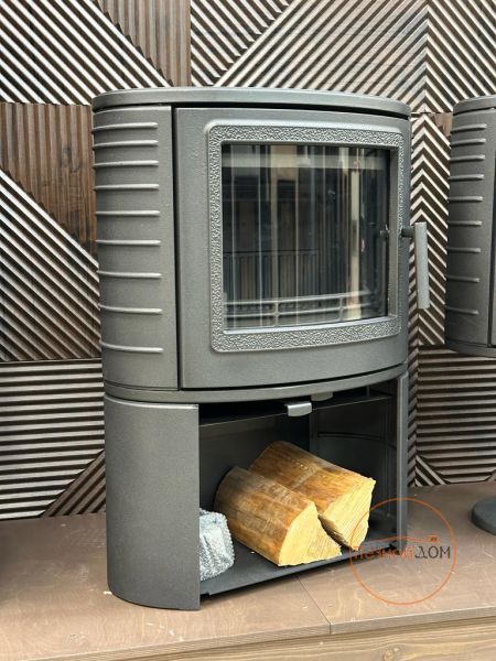 Чугунная печь “Puma” с дровником выпущена в 2023 году. Подключение дымохода сверху или сзади, в конструкцию включен дефлектор и колосниковая топка, покрытая изнутри чугунными пластинами. Вес печи составляет 130 килограммов, а мощность достигает 9 киловатт.