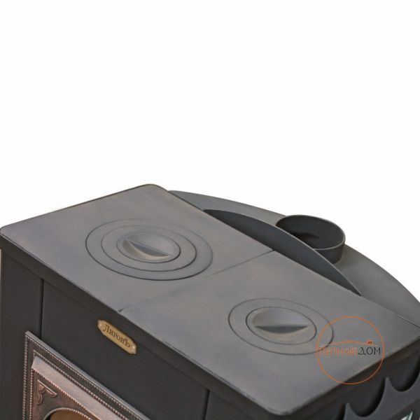 В верхней части печи сделана съемная 2-х конфорочная чугунная плита, которая позволяет готовить и разогревать пищу, что не маловажно в наше энергозависимое время.