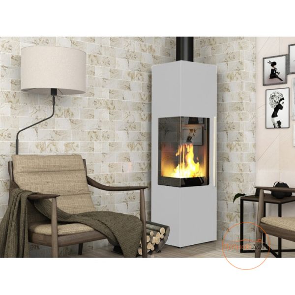 Печь камин Стеван 700 XL white от Сербского производителя Ember- это выразительное дизайнерское решение, сочетающее в себе высокие стандарты качества. Большое целиковое гнутое стекло, имеет Г образную форму, открывающее прекрасный вид на огонь. Система "Чистое стекло", подает разогретый кислород непосредственно на стекло и копоть не мешает любоваться процессом горения дров. Благодаря современному оснащению, многоуровневому дожигу и системам воздухообмена, пламя разгорается в топочной камере быстро и изящно, имея при этом высокий уровень КПД.