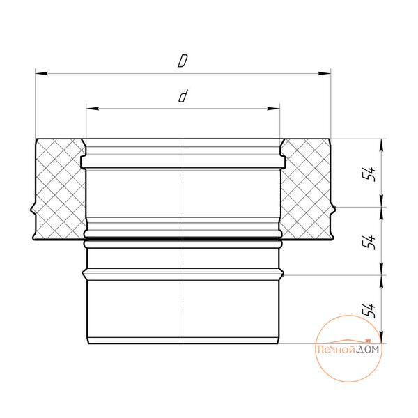 Переходник моно-термо с изоляцией. Изготовлен из внешней нержавеющей стали AISI 439 и внутренней AISI 439 толщиной 0.8. Изоляция 40 мм от датского производителя ROCKWOOL Wired Mat