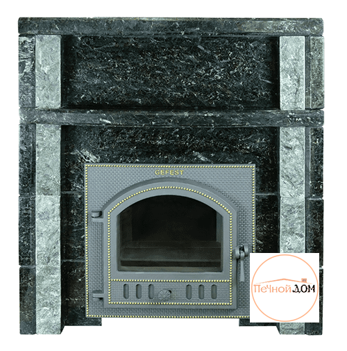 Каминная полка с часами и канделябрами — атрибут английской гостиной в любом соответствующем историческом фильме и сериале. Помимо полки каминное отверстие обрамлено с двух сторон своего рода «колоннами», поддерживающими полку. Именно эта П-образная конструкция и получила название «портал», что в переводе означает «врата». Но когда речь заходит о портале для печи в баню, то это всего лишь имитация по аналогии. В самом деле, печь и камин существенно отличаются друг от друга. Когда мы выводим топку в комнату отдыха, у нас нет возможности сильно варьировать размеры «окошка», за которым будут пылать дрова — такие дверцы делаются нескольких типовых размеров, наибольший из которых называется «панорамным».