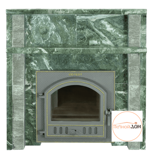 Каминная полка с часами и канделябрами — атрибут английской гостиной в любом соответствующем историческом фильме и сериале. Помимо полки каминное отверстие обрамлено с двух сторон своего рода «колоннами», поддерживающими полку. Именно эта П-образная конструкция и получила название «портал», что в переводе означает «врата». Но когда речь заходит о портале для печи в баню, то это всего лишь имитация по аналогии. В самом деле, печь и камин существенно отличаются друг от друга. Когда мы выводим топку в комнату отдыха, у нас нет возможности сильно варьировать размеры «окошка», за которым будут пылать дрова — такие дверцы делаются нескольких типовых размеров, наибольший из которых называется «панорамным».
