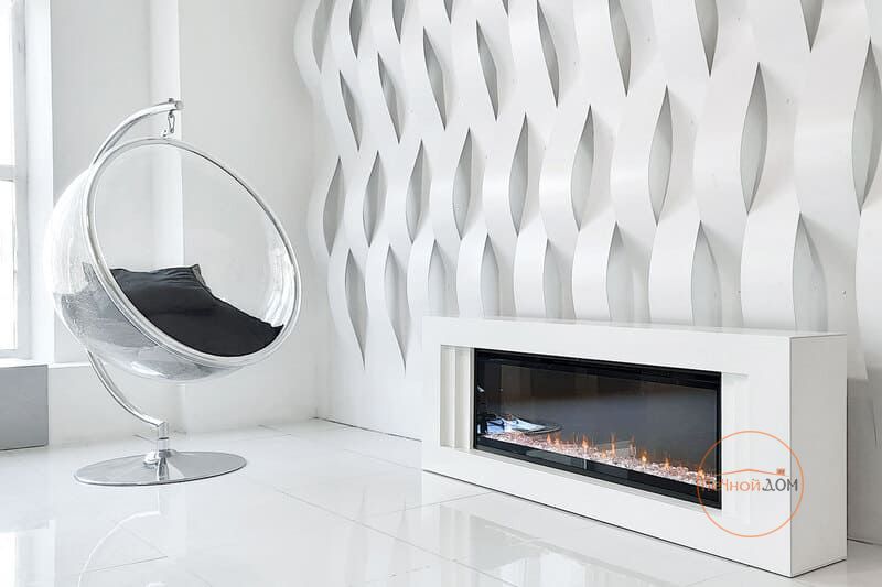 Линейный портал Line выполнен в сдержанном стиле хай-тек со строгими линиями корпуса. Классический цвет конструкции гармонично оттеняет яркое пламя камина, создавая лаконичную и современную обстановку в вашем доме.