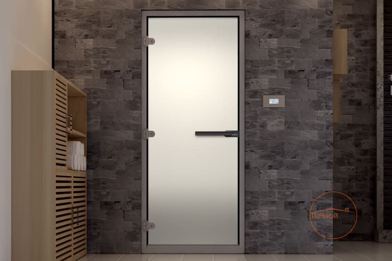 Данная модель двери подойдёт для установки в дверном проёме стандартных размеров. Стеклянное полотно матировано. В комплект входит четырёхсторонний короб и удобная прямоугольная ручка из алюминия. Дверное полотно крепится на три петли чёрного цвета. Петли находятся с левой стороны, что следует учитывать в планировке. Благодаря уплотнителю и магнитному фиксатору дверь надёжно закрывается и не пропускает потоков воздуха между помещениями.