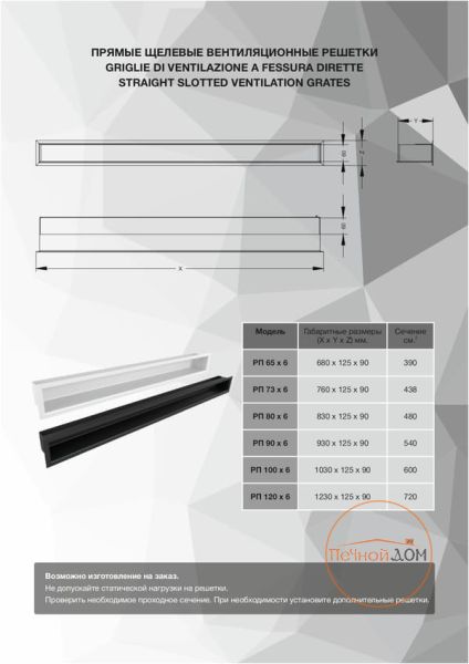 Щелевые вентиляционные решетки предназначаются для равномерного распределения воздуха в больших пространствах и крупногабаритных помещениях. Решетка РП 65х6 для каминов не только дополнит дизайн отопительного прибора, но и повысит его КПД.