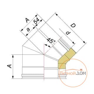 Отвод 45° с изоляцией двустенный предназначен для изменения угла направления или для смещения вертикальной оси дымохода. Он имеет термоизоляционный слой из базальтовой ваты Rockwool. Отвод 45° не должен нести на себе нагрузку (вес дымохода), а должен выполнять лишь функции поворота.