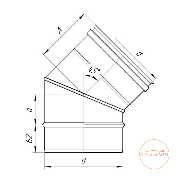 Сендвич-отвод Дымок LUX c изоляцией. Изготовлен из внешней нержавеющей стали AISI 439 и внутренней AISI 321 толщиной 0.5 мм или 0.8. Изоляция 40 мм от датского производителя ROCKWOOL Wired Mat