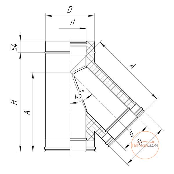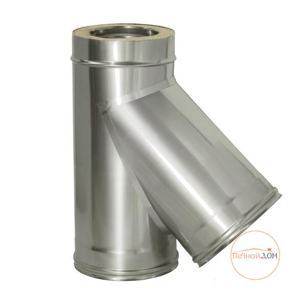 Сендвич-тройник Дымок c изоляцией. Изготовлен из внешней нержавеющей стали AISI 439 и внутренней AISI 439 толщиной 0.8. Изоляция 40 мм от датского производителя ROCKWOOL Wired Mat