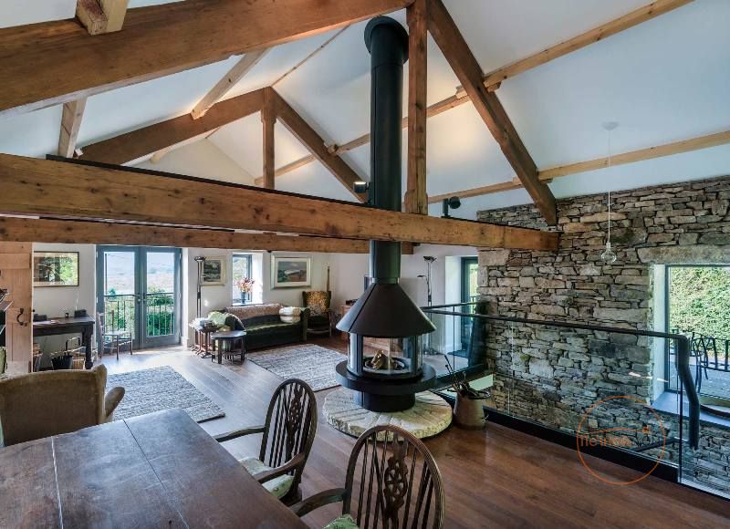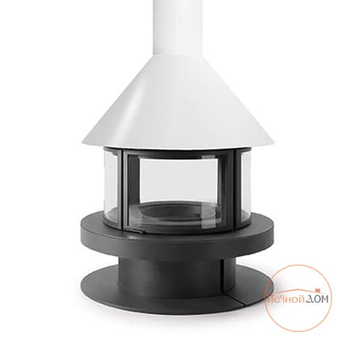 Хайтек-камин центрального размещения, предоставляющий обзор 360 градусов на горящий огонь. Прекрасное решение для гостиной.