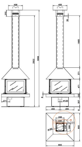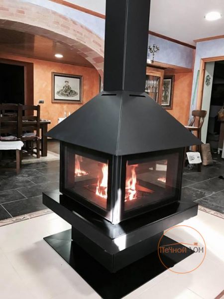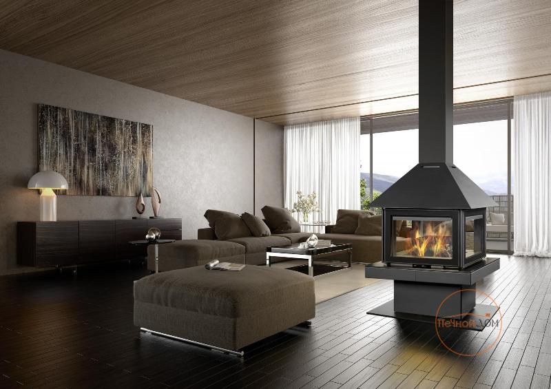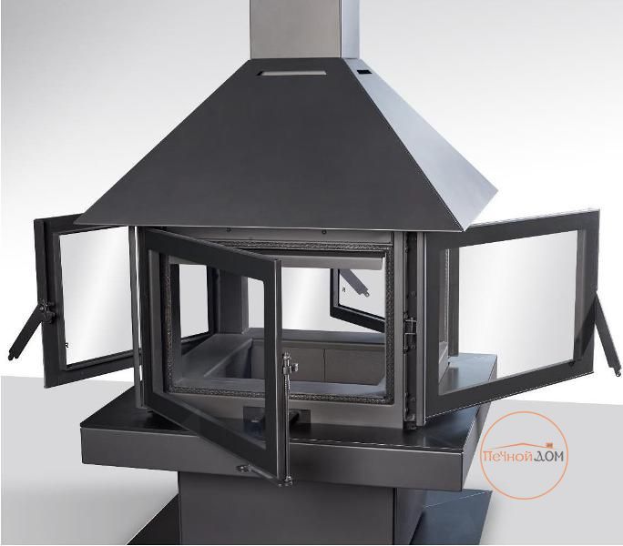 Загрузка топлива осуществляется просто и удобно - с любой стороны очага. В результате, вы можете по максимуму использовать большой объем топки для того, чтобы тепло этого уникального камина добралось до каждого уголка Вашего дома.