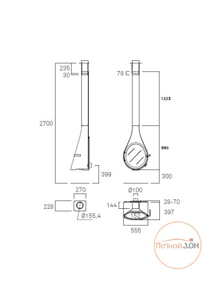 В стандартном исполнении камин спроектирован для установки в помещении высотой 2,7 м.