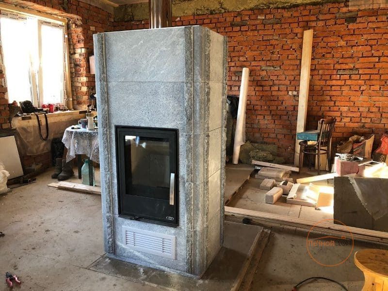 Облицовка из теплоёмкого талькомагнезитного камня.