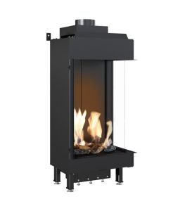 Современная, газовая каминная топка с угловым стеклом и вертикально вытянутой формой прекрасно дополнит интерьер дома или квартиры.