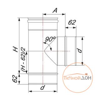 Тройник круглого сечения одноконтурный 90 градусов без изоляции выполнен из нержавеющей стали марки AISI 321 толщиной 0,8 мм. Все камины и печи с боковым и задним выходом дымовыводящего патрубка должны комплектоваться тройником. Для установки в основание дымохода рекомендуется использовать только тройники из металла толщиной 0,8 мм и больше. Тройники толщиной 0,5 мм применяются для вентиляции или в местах без температурных нагрузок.