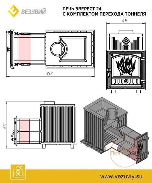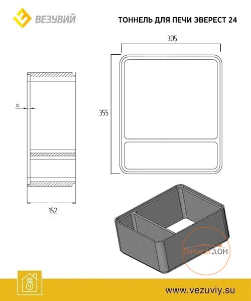 В комплекте: 1 тоннель для печи Эверест 24, 2 шпильки М8