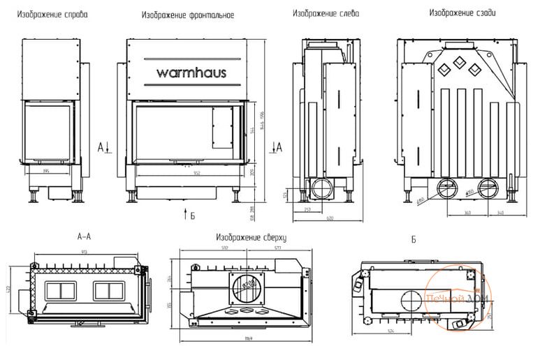 Каминная топка угловая со стеклом правая KANT R 100/57h / Warmhaus Fireplace Company (Россия)