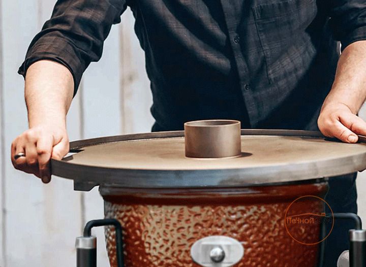 Благодаря эксклюзивной системе подачи ароматной щепы для копчения, Вы сможете безопасно досыпать её в гриль прямо на угли, не открывая крышку гриля и не сбрасывая температуру во время готовки.