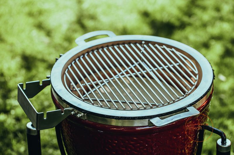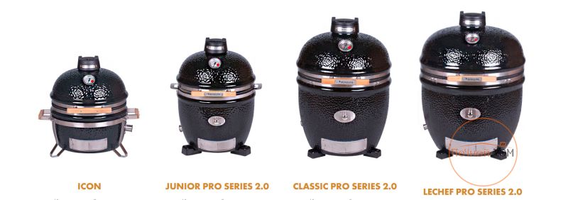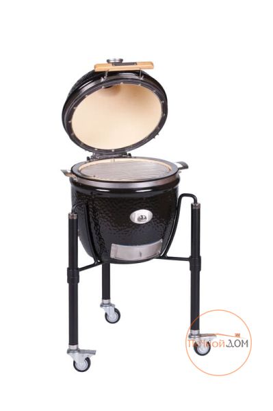Гриль Monolith Junior доступен в красном и черном цветах, в версии с подставкой на ножках с колесиках, либо на керамических ножках для стационарной установки и встраивания в модульные кухни.