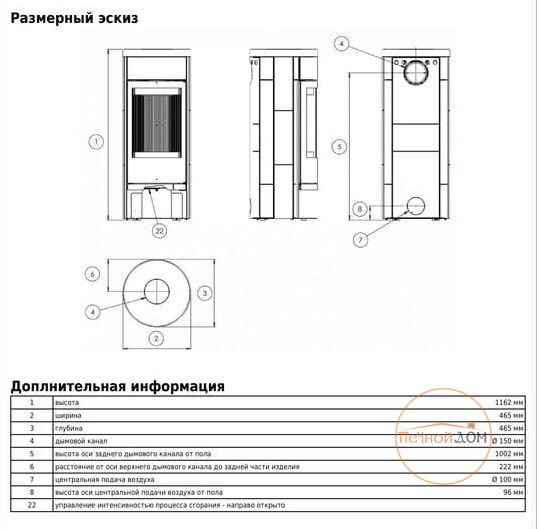 | Диаметр дымохода | 150 мм |